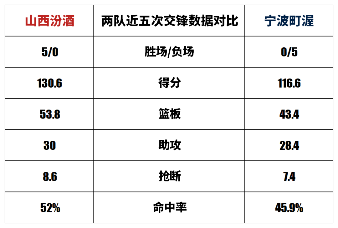 山西汾酒与宁波町渥历史上一共交手9次,山西汾酒8胜1负。上赛季两队交手2次,山西汾酒2胜0负;本赛季两队交手1次,山西汾酒1胜0负。